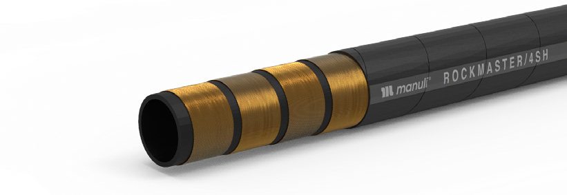 极限型软管 ROCKMASTER 技术参数 订货代码 软管尺寸 增强层尺寸 软管外径 最大工作压力 爆破压力 最小弯曲半径 重量 接头 DN dash inch mm inch mm inch bar psi bar psi mm inch g/m lb/ft Std1 Std2 液压系统:超高压管路,适用于严苛环境条件,剧烈摩擦条件下的特殊安装,海洋应用,地下和露天采矿场所。 矿物油,植物油和合成酯基油(最高至100°C/212°F),乙二醇和聚乙二醇,乳化矿物油,水。 • 经过验证的高抗疲劳性能 • 卓越的耐磨性 • 高耐臭氧性和高耐天候 • 对各种规格的阻燃性 • 外层抗静电抗毒腐蚀性 • 耐温度性能升级 • 广泛的BIO生物油和矿物油相容性 应用&流体 主要特点 ROCKMASTER/4SH  耐磨,耐天候和耐热 连续工作温度范围 -40 °F / 250 °F  -40 °C / 121 °C  最高工作温度 125 °C, 257 °F  内胶层  耐油合成橡胶 增强层 四层高抗拉钢丝缠绕 外胶层  高抗臭氧,耐天候和耐热合成橡胶 适用标准 Exceed EN 856 4SH; ISO 3862 4SH 型式认证 ABS; DNV-GL; DNV-GL (MED); BV; FRAS;  CUTR; LR; MA; MSHA; B; RINA; NK